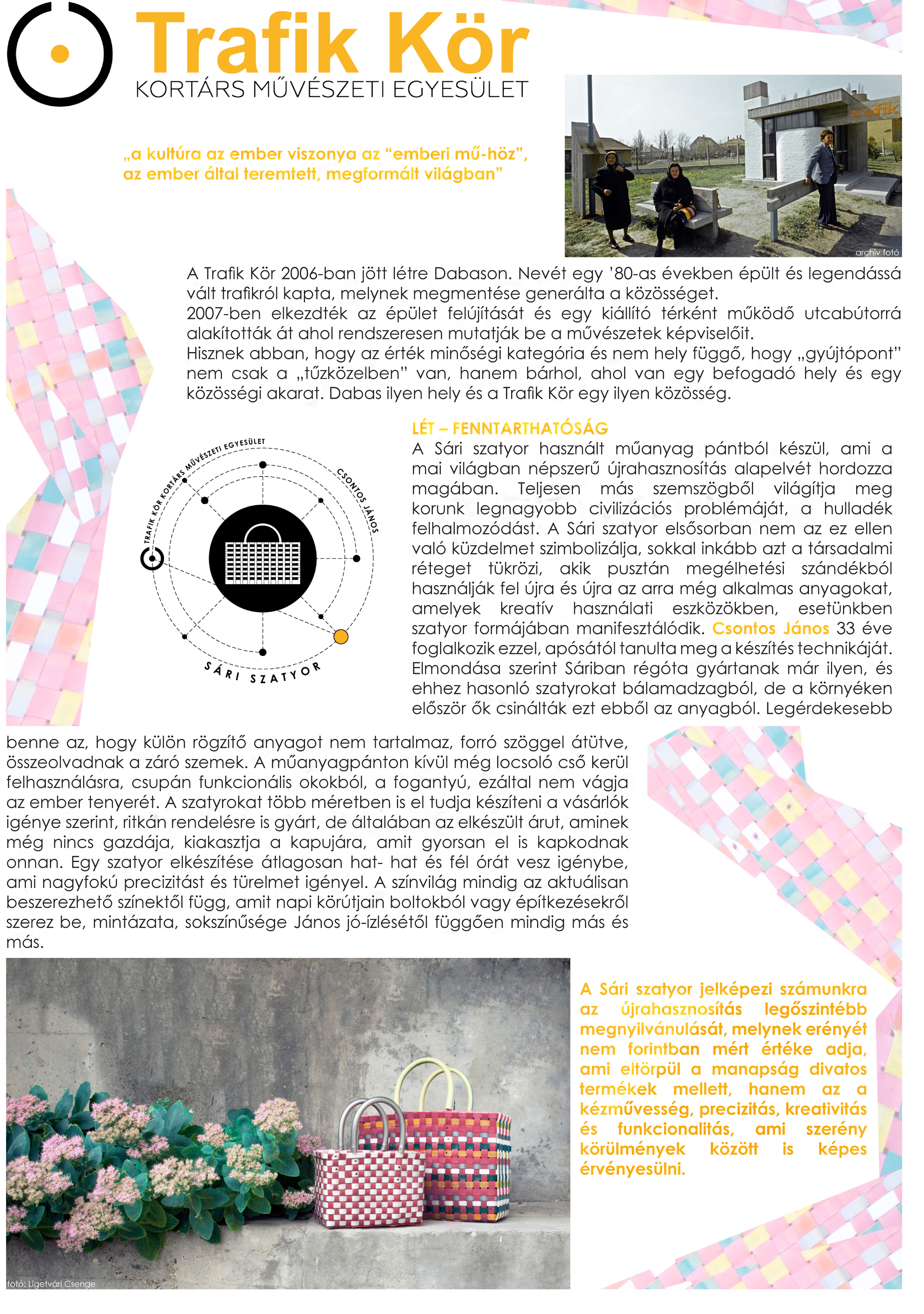 Posted on május 2, 2015február 15, 2021 Készítő: trafikkorCsontos János Arculatterv munkák: Ligetvári Dorottya Sára | Fotó: Ligetvári Csenge Luca In memoriam | Csontos János 1960-2021| …márpedig a hétköznapi hősök léteznek és képesek az előítélettől terhes világban is egyedivé válni…Nyugodj békében János! Portéfilm Csontos Jánosról a Sári szatyor készítőjéről 2015 Facebookon való megosztáshoz kattintás ide.(Új ablakban nyílik meg) Facebook
