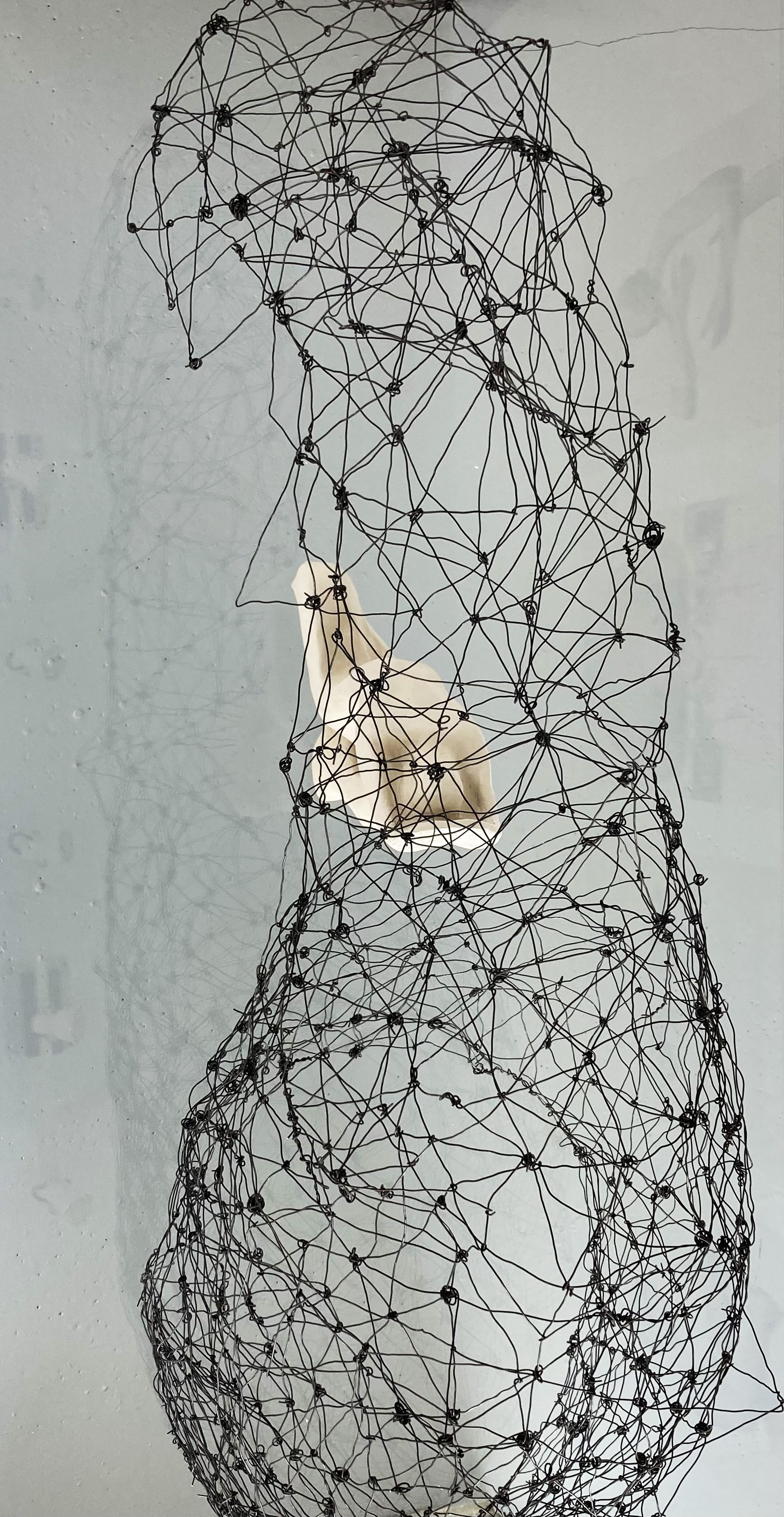 Amikor a félelem, a fájdalom és a kétségbeesés érzését próbáltam megfogalmazni, egy sötét nehéz ködszerű anyag képe formálódott meg bennem. Talán egy nagy, arctalan félelmetes fenevad, ami beborít mindent. A vele való küzdelem egy nekifeszülő emberi alakban testesül meg, ami a fény, a jóság és a bátorság szimbóluma, kifejezi a küzdelmet, a belső erőt és az ellenállást. A sötét, destruktív erő könyörtelenül tör az életre, de a bátorság és az élni akarás ellenállhatatlanul száll szembe vele.”