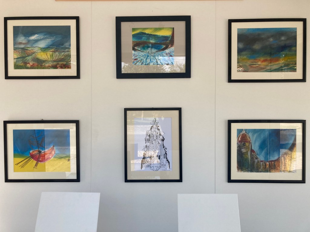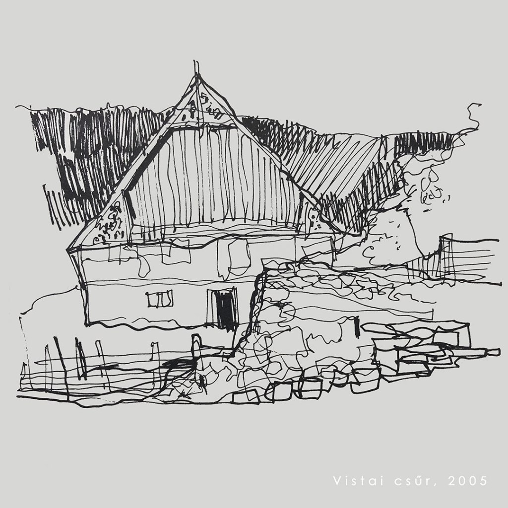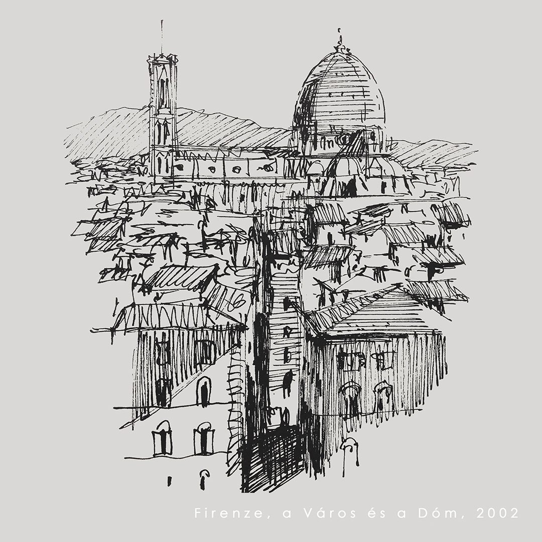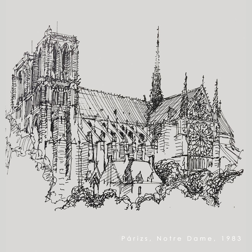 A VILÁG, amelye e rajzok készítése által fedezek fel, így lesz igazán az enyém. Az a néhány perces gyönyörű, feszült küzdelem, amelyet például Amiens, Rouen, Tours Katedrálisai előtt ülve vívok magammal, mint egy sokéves tervezési folyamat egyre fáradó öröme. S micsoda boldogság Santorini szikláit és fehér madárfészek-házait rajzolni, s rajzolni otthon, Erdélyben kalotaszegi dombokat, tornácos házakat, temetők pusztuló faragott fejfáit, négyfiatornyos templomokat a dombok hátán ülve, vagy házak karéjába húzódva. E rajzok nélkül fél-életem sem lenne, azt hiszem.